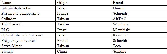 2) Fejlett világhírű márkájú alkatrészek elfogadása pneumatikus alkatrészekben, elektromos alkatrészekben és működtető alkatrészekben.
