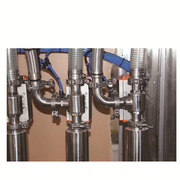 3. Nagyobb teljesítmény kielégítésére képes két sínes palack adagolás, kétsínes töltés és két fúvóka kupak csavarozása vagy hengerelése és sajtolása révén. Ez a gép nagy töltési pontossággal rendelkezik, szétszerelhető és kényelmesen sterilizálható, gyorscsatlakozó rozsdamentes acél dugattyús szivattyúval. Állandó nyomatékkal ellátott csavarozás és pneumatikus védőeszköz használata esetén a lezárt száj szivárgásmentes.